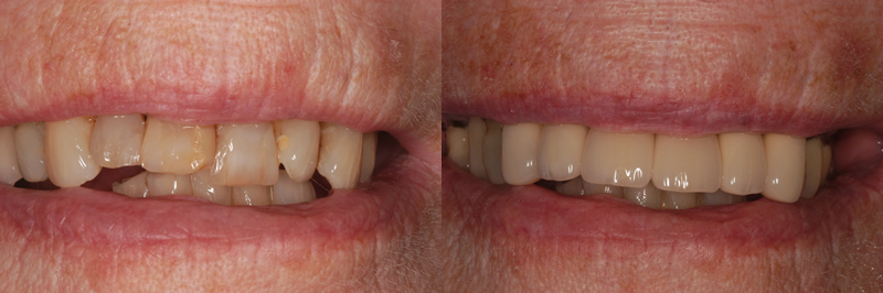 A 76 year old lady had always wanted to have a straight, even smile. She had some very large old fillings, therefore we decided to crown her 6 front teeth which gave her the magic smile and strengthened her teeth also. She loves them and wished she had them done earlier.